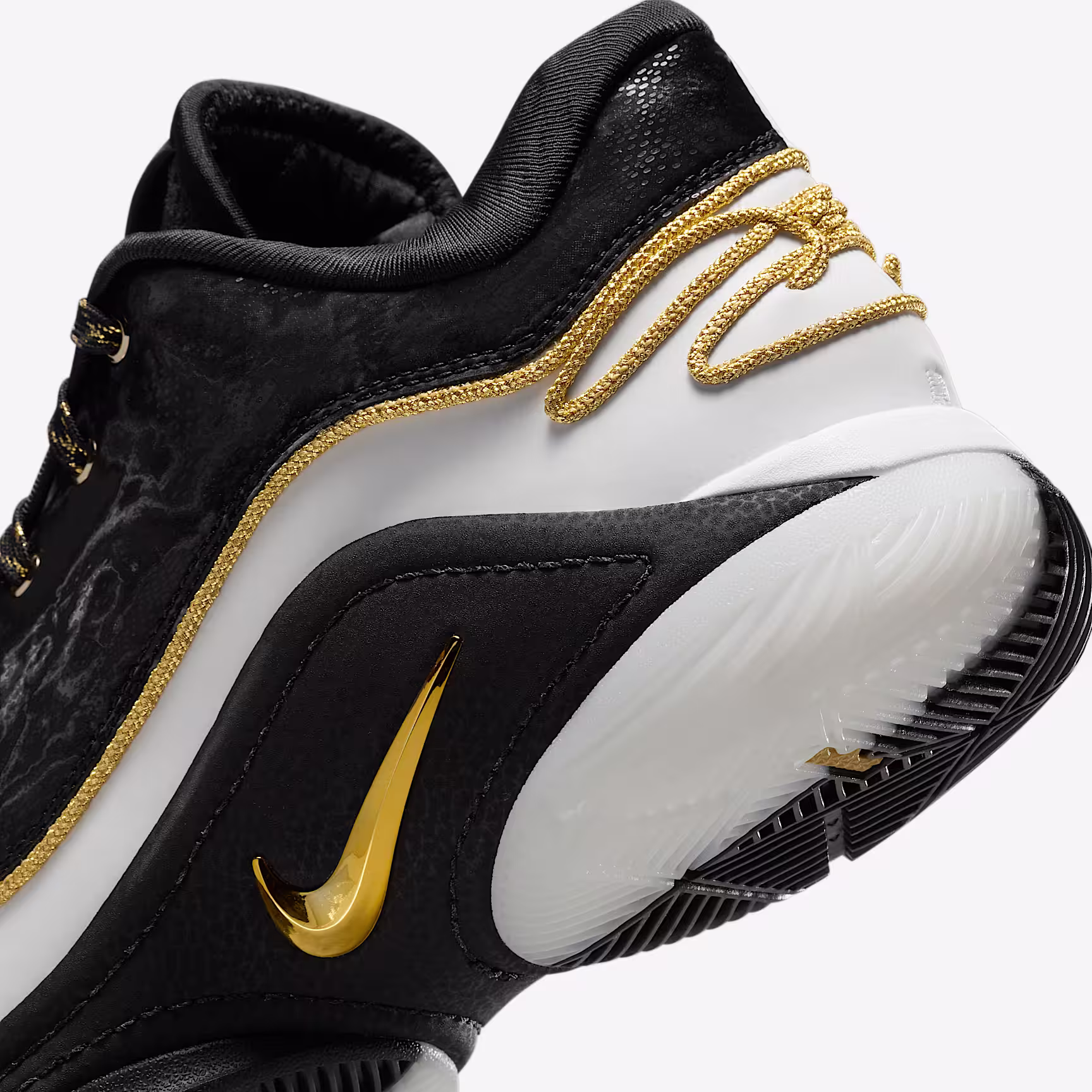 LeBron isn't slowing down any time soon. The open-court nightmare is as fast and spry as ever. But even Bron needs support when he's at full throttle. That's why we levelled up the LeBron 22. Newly implemented saddle wings offer optimal midfoot stability. They complement the heel and forefoot Air Zoom units, so the King can keep pushing the sport forwards. This special pair comes with an asymmetric design that has become synonymous with LeBron's efforts for equality and gold accents that have crowned him as King.