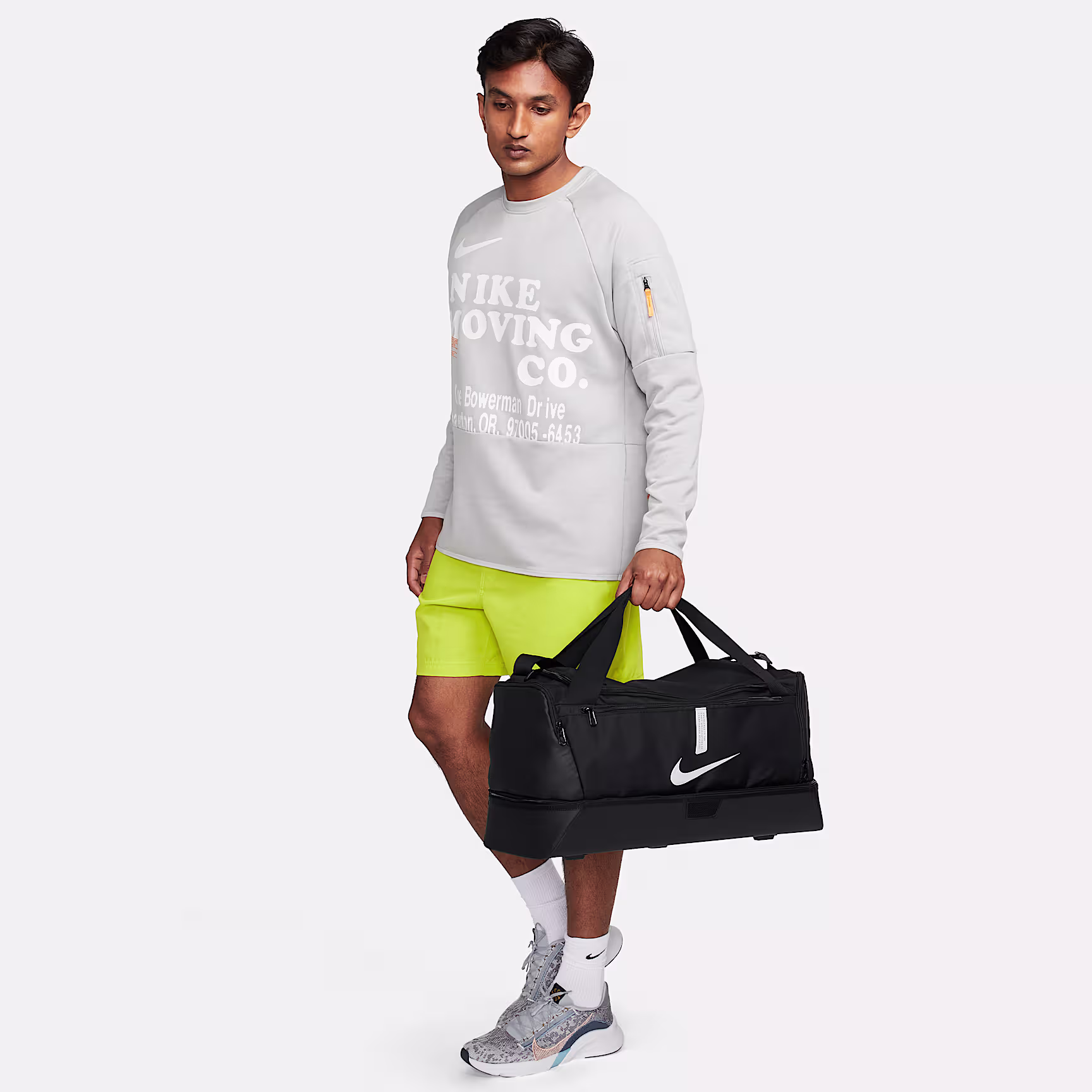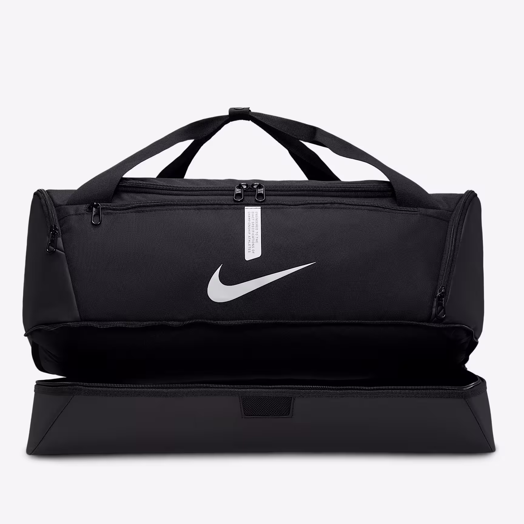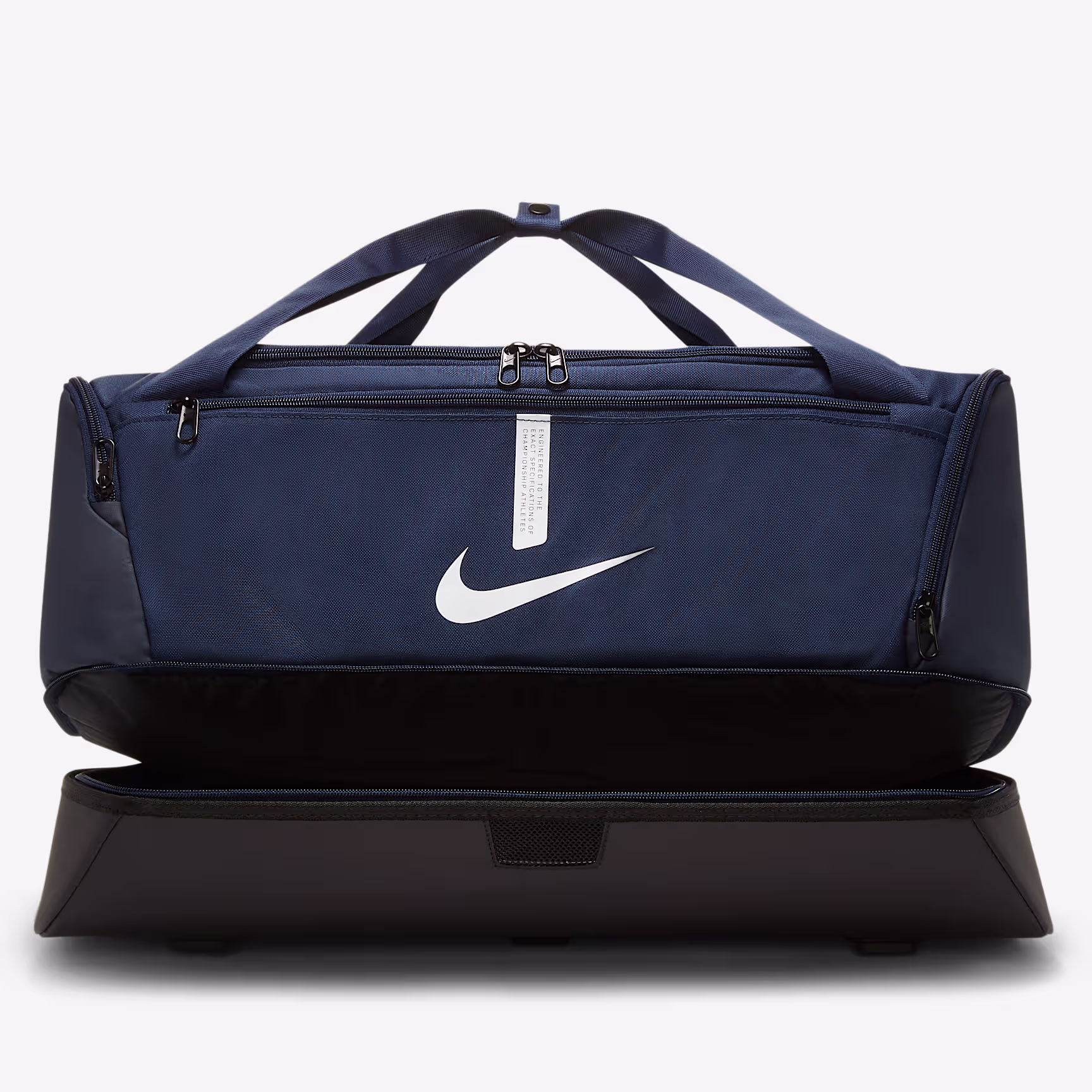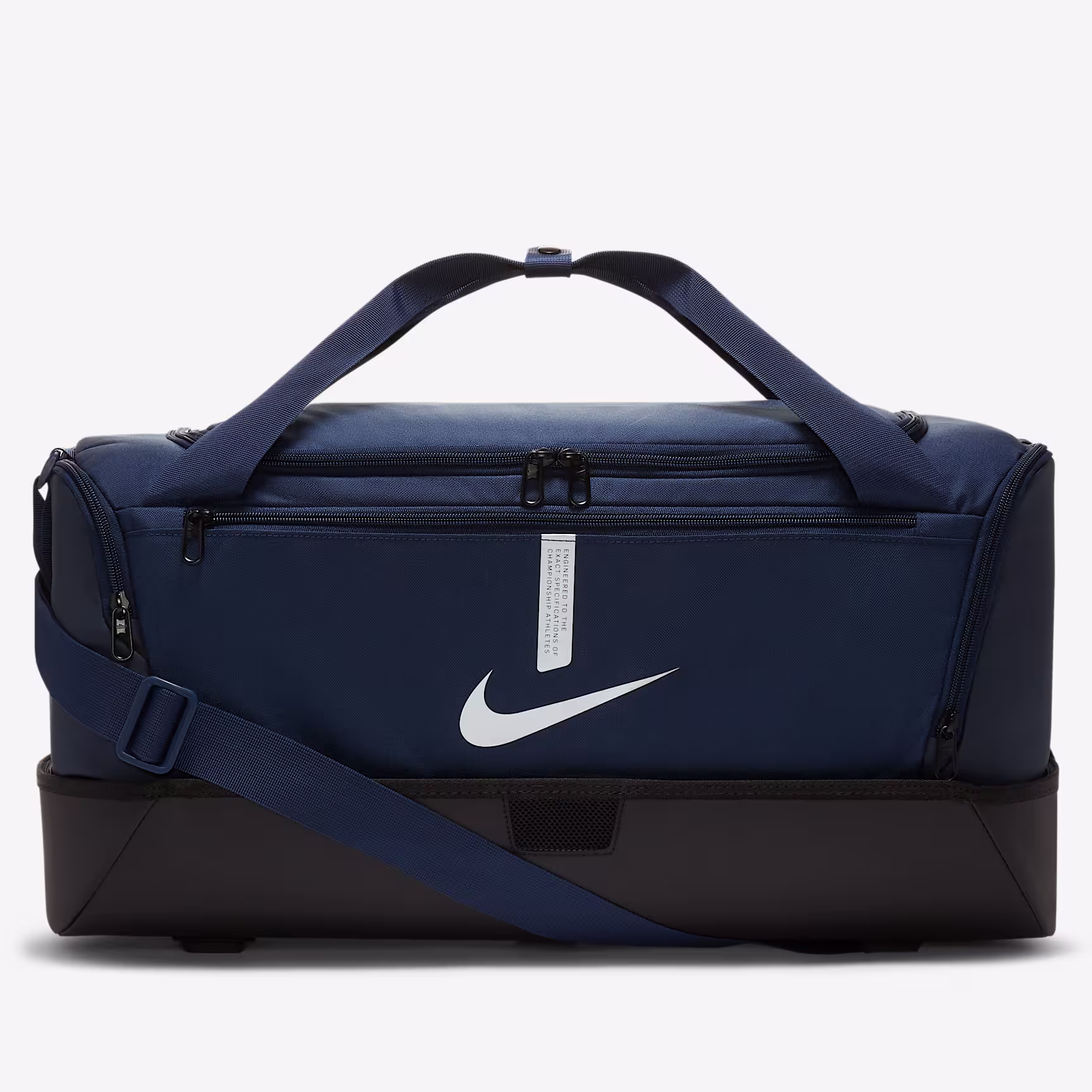 The Nike Academy Team Hard-Case Duffel Bag is a durable design built to keep you organised. Its hard bottom helps keep your gear safe, while multiple carrying points give you options when going to and from the pitch.