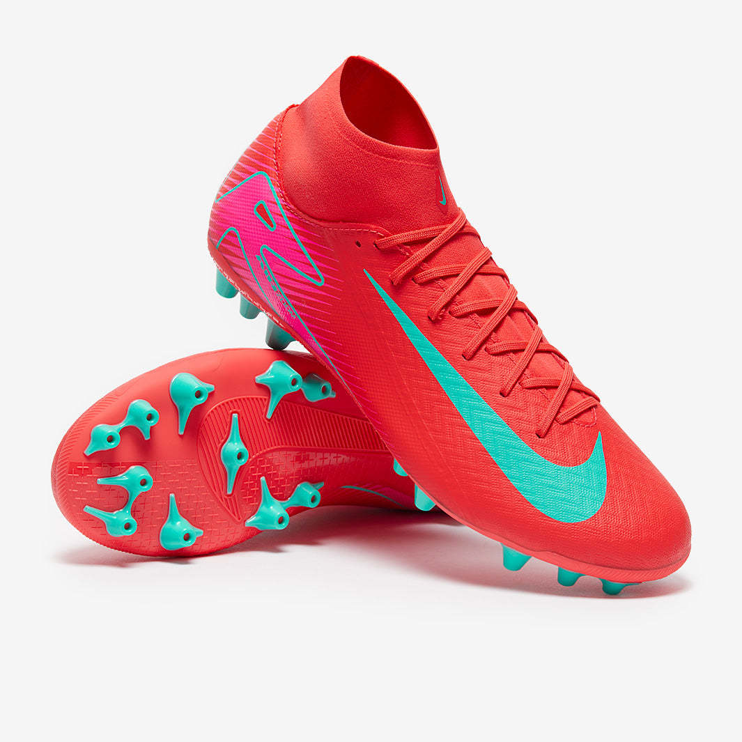 The ultimate expression of speed. Become untouchable on the field with Nike Air Zoom Mercurial Superfly 10 Academy AG soccer cleats in Ember Glow/Aurora Green.