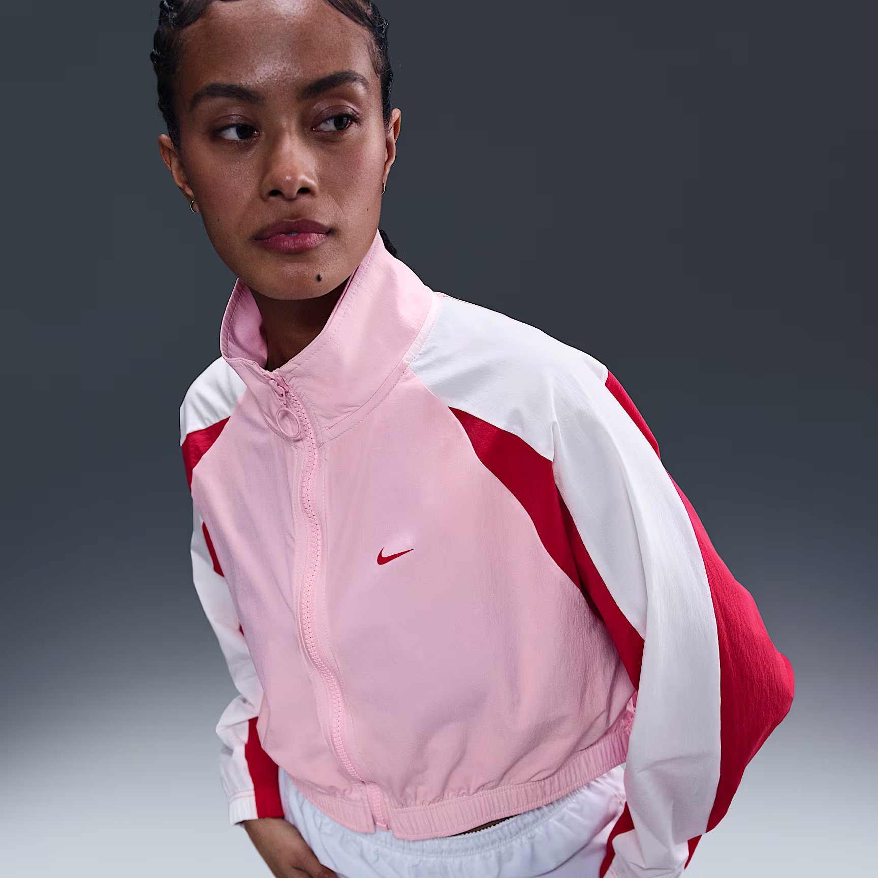 Injected with Y2K energy, the Nike Sportswear Jacket hits refresh on a classic silhouette. Comfortable and sweat-wicking, the woven fabric has a bit of stretch to help you move freely.
