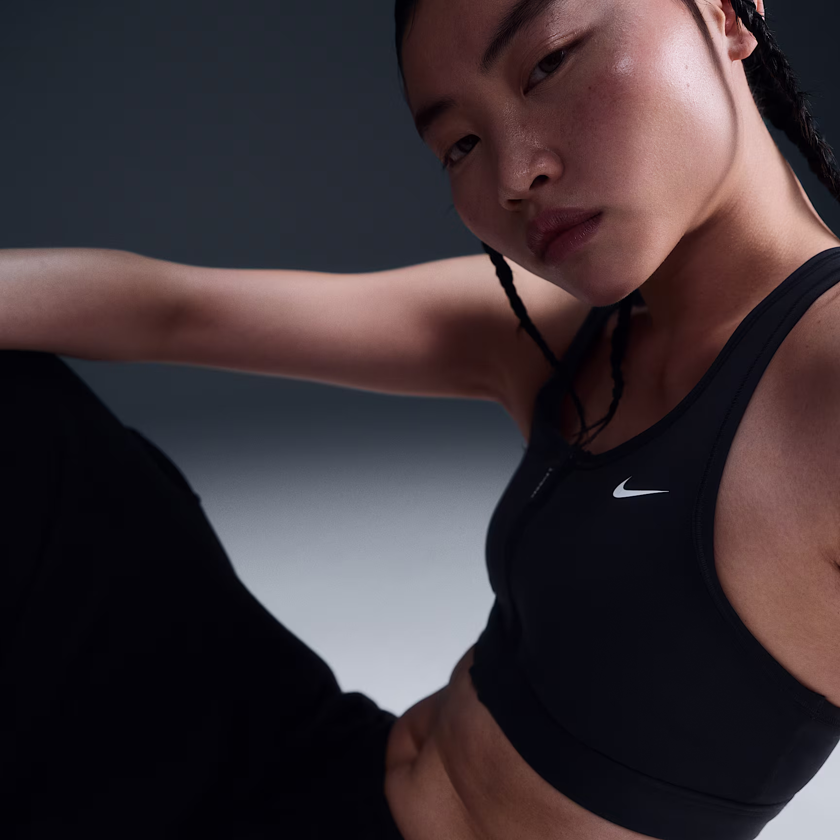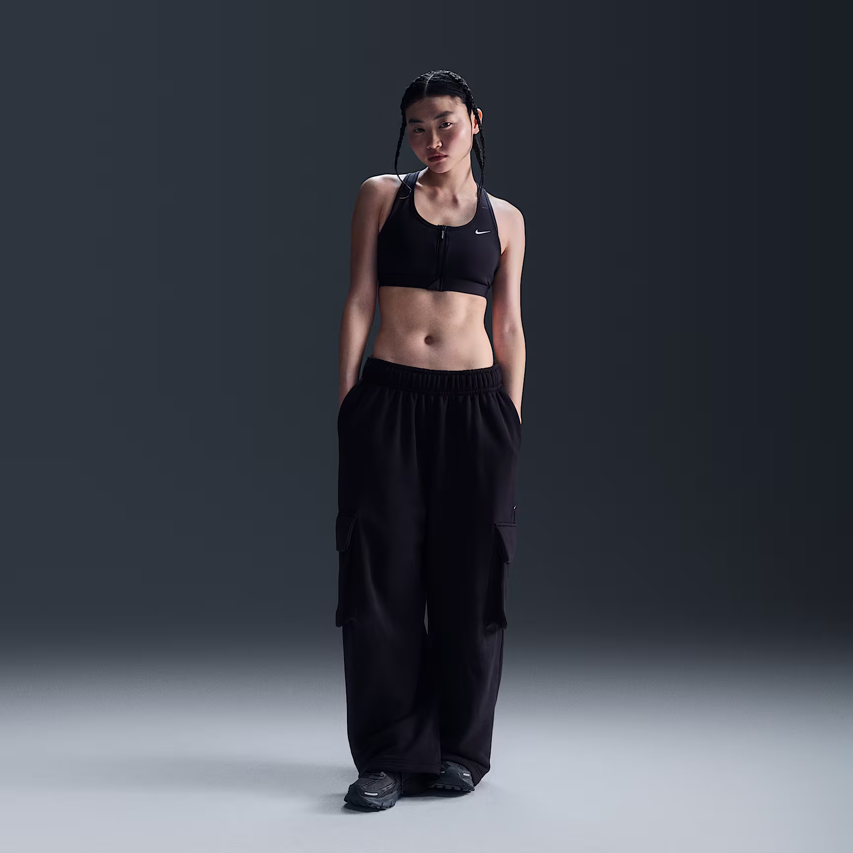 Getting in and out of your bra shouldn't be the hardest part of your workout. This Swoosh bra's front-zip design makes changing easier while still offering plenty of security with a semi-automatic locking zip. Great for training workouts and dance classes, its medium support gives you a snug hold that helps keep everything in place. Sewn-in pads stay in place so you can work hard without worrying about them shifting or folding. Plus, its sweat-ready, adaptive fabric quickly recovers its shape so you can stay comfortable throughout your workout.