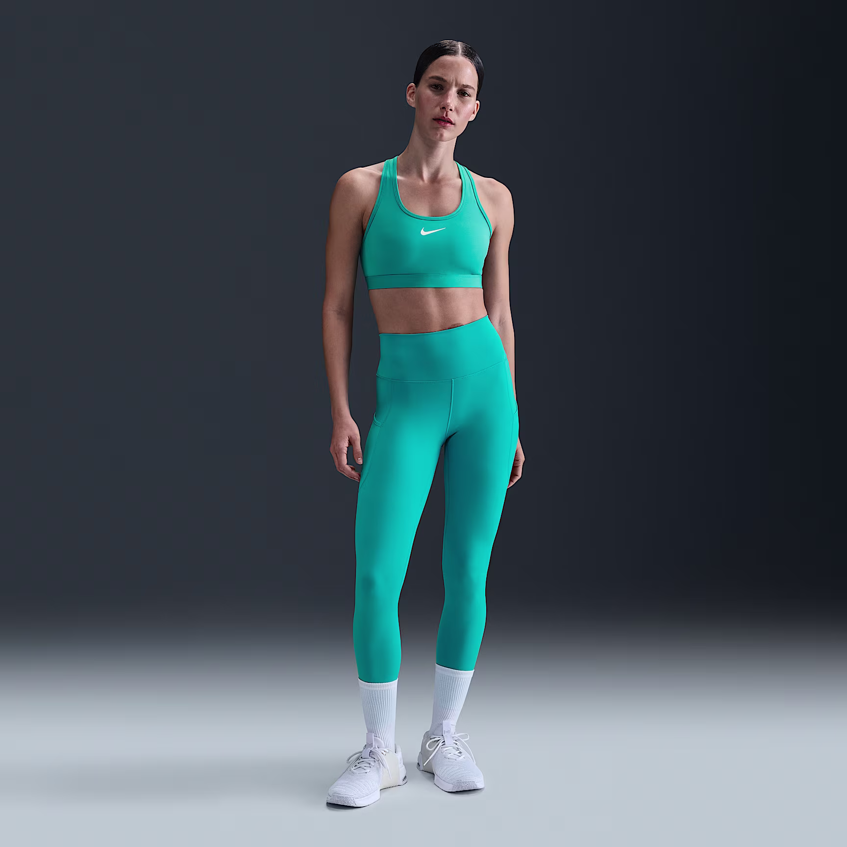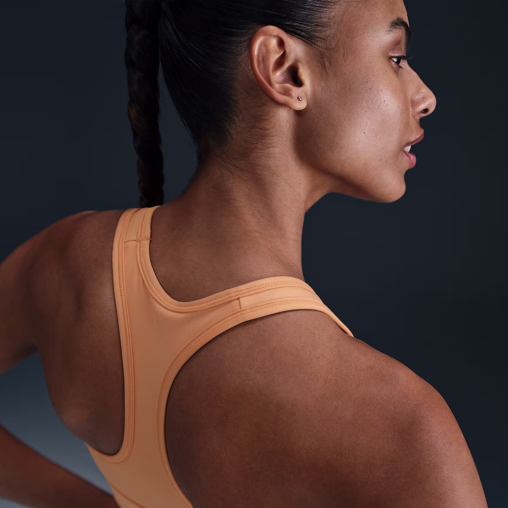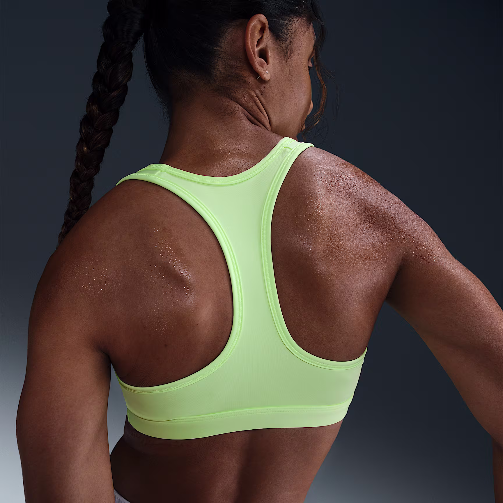 You're on the move. Your padding shouldn't be. This Swoosh bra's sewn-in pads stay in place so you can work hard without worrying about them shifting or folding. Great for training workouts and dance classes, medium support gives you a snug hold that helps keep everything in place. Plus, the sweat-wicking, adaptive material quickly recovers its shape so you can stay comfortable throughout your workout.